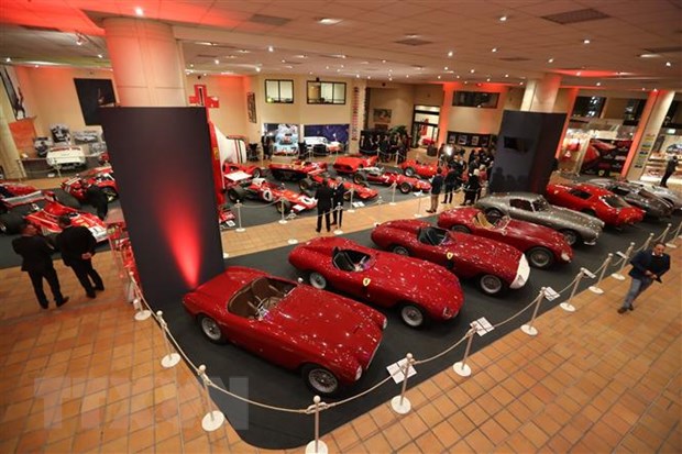 Các mẫu xe của hãng Ferrari được trưng bày tại triển lãm ở Monaco. (Ảnh: AFP/TTXVN)