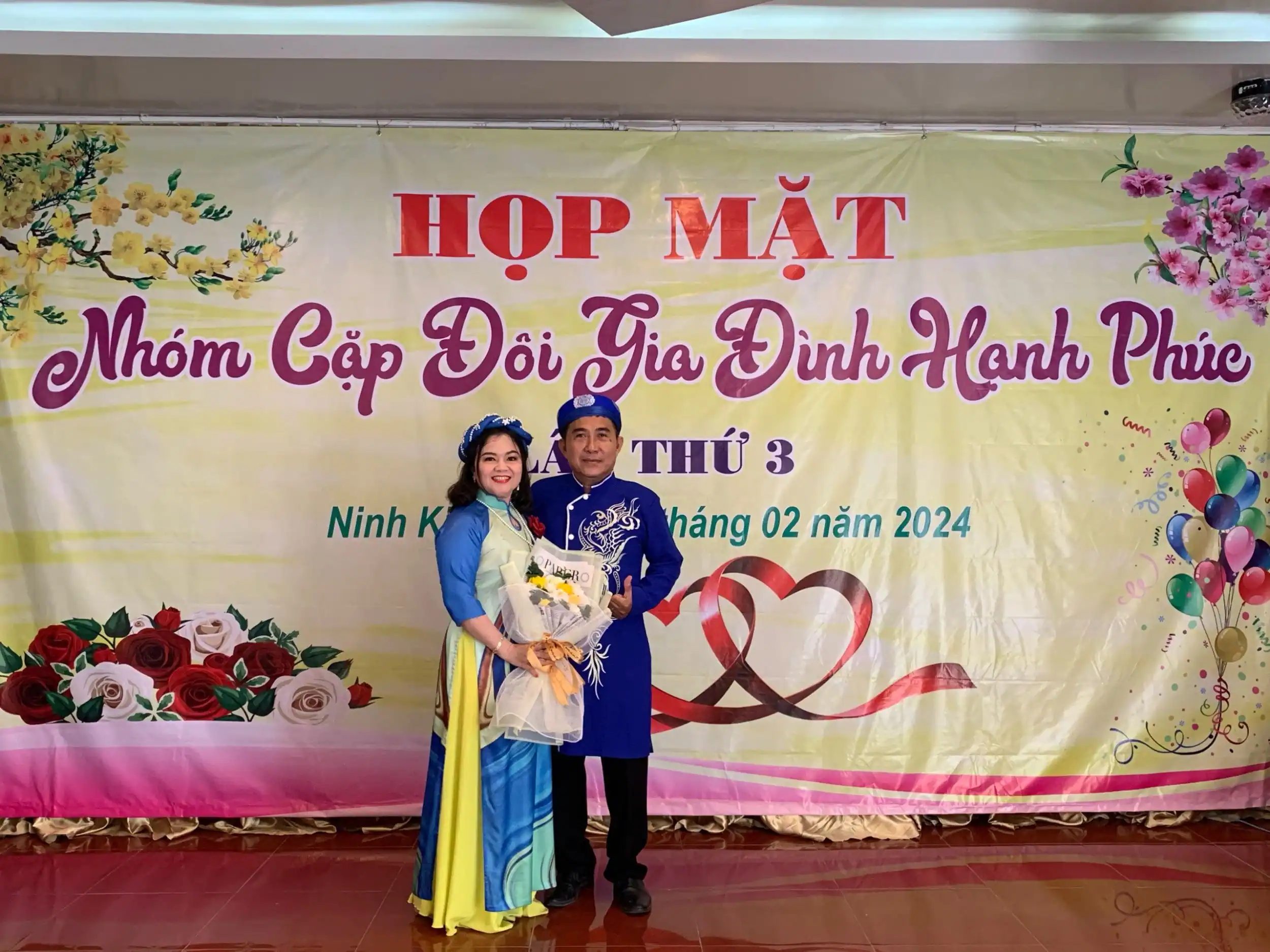Vợ chồng chị Trần Thị Bích Châu trong buổi họp mặt Nhóm cặp đôi gia đình hạnh phúc năm 2024. Ảnh: nhân vật cung cấp