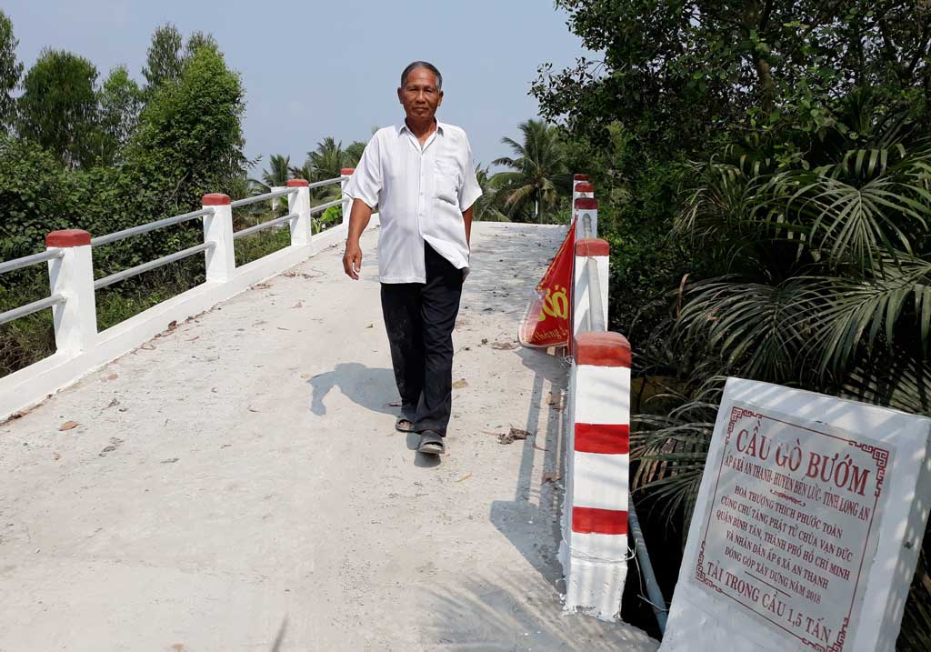 Cây cầu Gò Bướm vừa được khánh thành đầu năm 2019 với kinh phí hơn 100 triệu đồng là công trình mang đậm “dấu ấn” cựu chiến binh Hồ Văn Thành