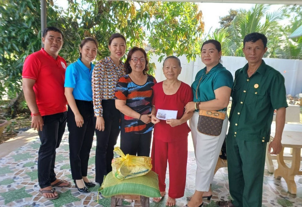 Bà Đoàn Thị Mười (thứ 4, trái qua, xã Phước Tân Hưng, huyện Châu Thành) tích cực tham gia công tác thiện nguyện tại địa phương