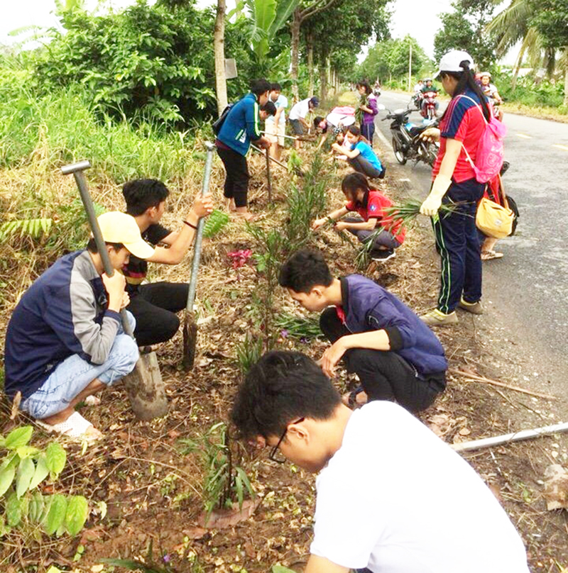 Sinh viên các trường đại học ở TP Cần Thơ tham gia trồng cây trong Chương trình “Hè tình nguyện năm 2018”.
