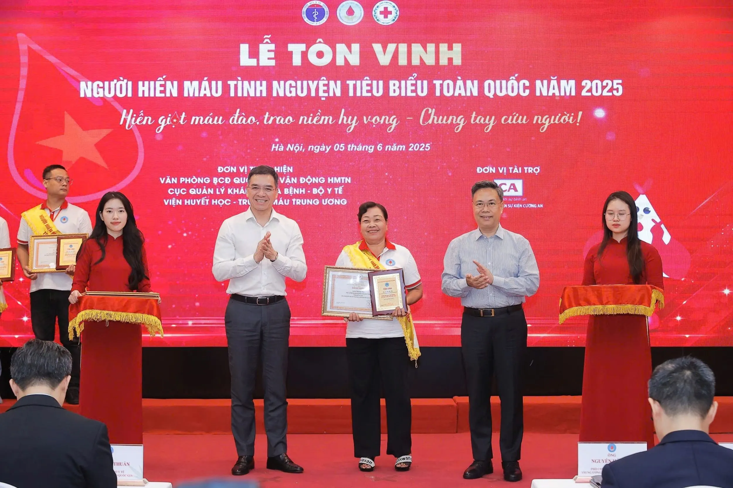 Cô Thu được vinh danh là người hiến máu tình nguyện tiêu biểu toàn quốc năm 2025. Ảnh: NVCC