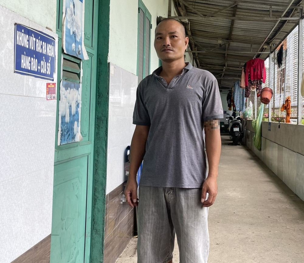 Anh Nguyễn Thanh Tuấn (ấp 5, xã Mỹ Yên, huyện Bến Lức) bên dãy nhà trọ của mình