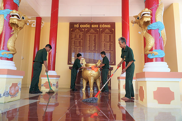 Cán bộ, hội viên CCB xã Ðịnh Môn, huyện Thới Lai, vệ sinh Ðền thờ liệt sĩ của xã.