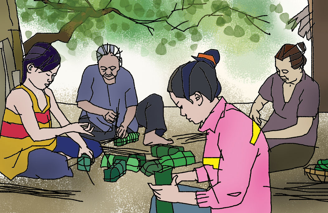 Bà Phương cho biết: “Chỉ có dịp tết, con cháu mới họp mặt đông đủ. Năm nào cũng vậy, gia đình tôi gói bánh tét và nấu các món ăn truyền thống để cúng ông bà. Mọi người cùng quây quần bên nhau. Đêm giao thừa, ông bà, con cháu canh nồi bánh tét, kể nhau nghe những chuyện vui, buồn trong một năm. Giao thừa, cả nhà cùng ăn bánh, mứt”.