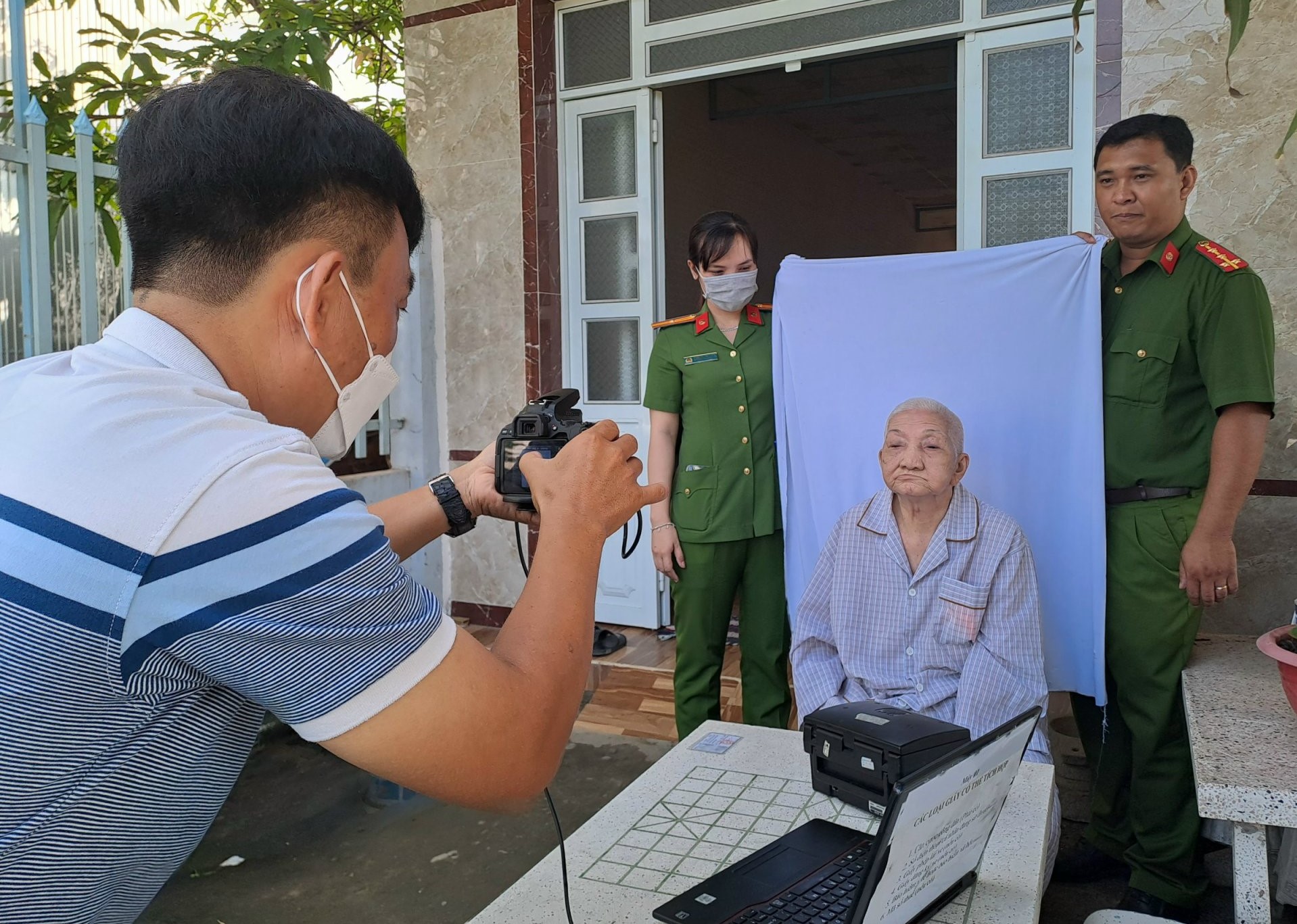 Vợ mất, ông Nguyễn Văn Bé, 93 tuổi phải sống một mình trong căn nhà đồng đội được xây cất đã lâu. Con đường từ nhà ông đến UBND Phường Bình Thạnh, Thị xã Long Mỹ dài hơn 10 cây số, phải đi đò qua nhiều kênh, rạch. Thấu hiểu hoàn cảnh của ông, cán bộ chiến sỹ Công an Phường Bình Thạnh đã xuống tận nhà đưa rước để giúp ông thuận tiện đi làm căn cước khi có tổ cấp lưu động trên địa bàn. Ông Bé bộc bạch: “Có gì bằng đâu. Tôi lớn tuổi, đi lại khó khăn. Được địa phương và lực lượng công an quan tâm đưa rước những người cao tuổi như tôi để đi làm căn cước công dân tôi thấy vô cùng quý báu. Tôi mừng lắm”.