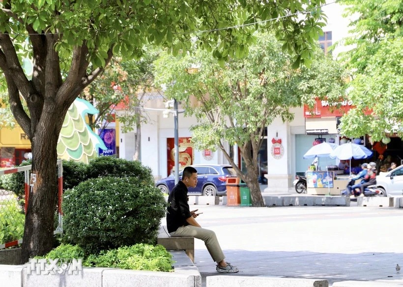 Những hàng ghế nằm dưới tán cây là điểm trú chân quen thuộc của người dân Thành phố Hồ Chí Minh. (Ảnh: Hồng Giang/TTXVN)