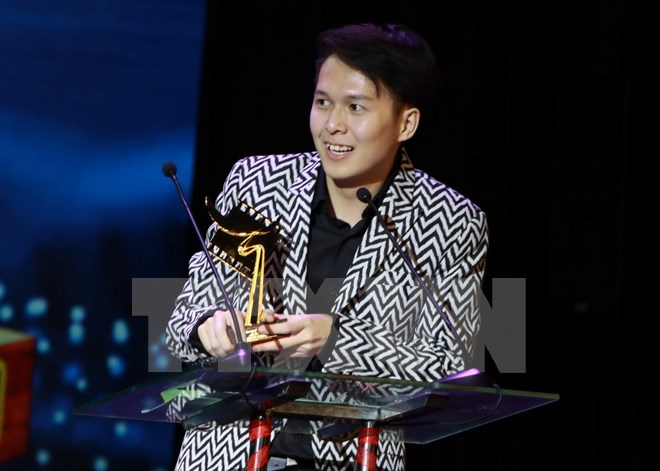 Giải Đạo diễn xuất sắc nhất thể loại phim điện ảnh được trao cho đạo diễn Vũ Ngọc Phượng phim "12 chòm sao - Vẽ đường cho yêu chạy." (Ảnh: Phương Vy/TTXVN)