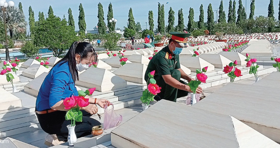 Vợ chồng Thượng úy Trần Minh Quân cùng tham gia hoạt động đền ơn đáp nghĩa do huyện Tân Trụ phát động