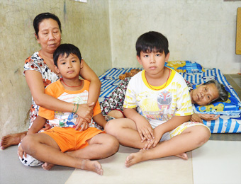 Trong căn nhà tình thương ở hẻm 577, đường 30 Tháng 4, quận Ninh Kiều, gia đình bà Triệu Thị Kiều Oanh khốn khổ với ba người bệnh và hai đứa trẻ mồ côi...
