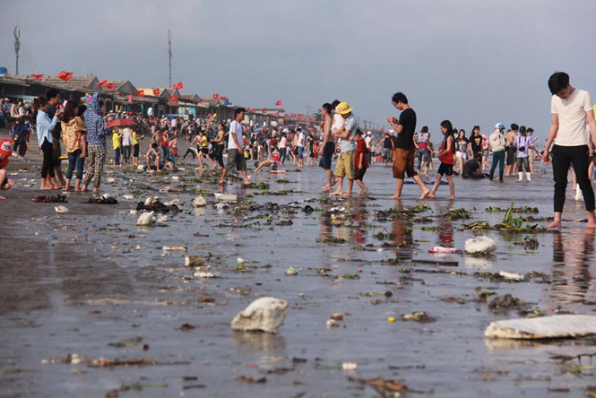 Bãi biển Quất Lâm ngập rác những ngày nghỉ Lễ 30/4 và 1/5.(Ảnh: Lê Nam).