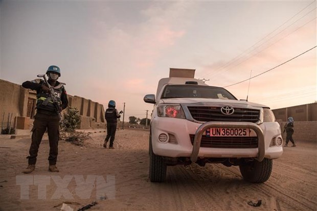 Lực lượng Phái bộ gìn giữ hòa bình của Liên hợp quốc tại Mali (MINUSMA) tuần tra tại Timbuktu, Mali tháng 12/2021. (Ảnh: AFP/TTXVN)