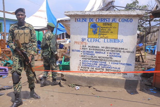 Lực lượng an ninh gác tại hiện trường một vụ tấn công ở Kasindi, tỉnh Bắc Kivu, CHDC Congo. (Ảnh: THX/TTXVN)