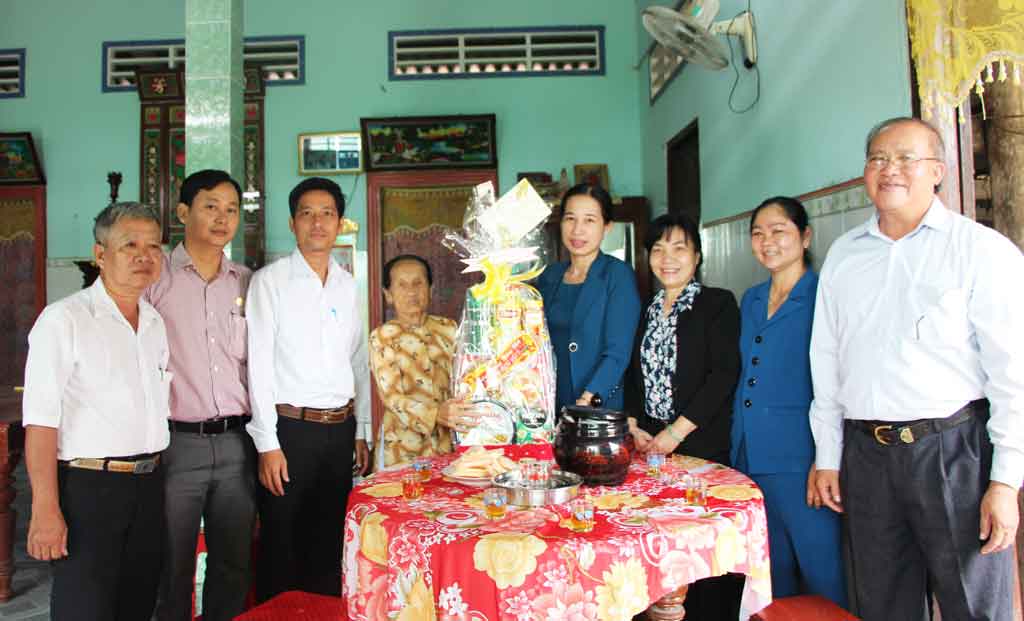 Chánh văn phòng HĐND tỉnh - Đặng Thị Ngọc Mai (thứ 4, phải qua) tặng quà tết cho gia đình chính sách