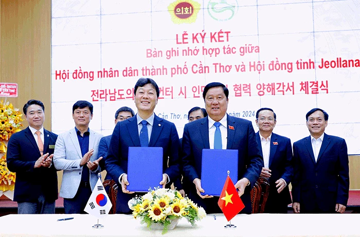 Lãnh đạo HĐND TP Cần Thơ và Hội đồng tỉnh Jeollanam (Hàn Quốc) ký Bản ghi nhớ hợp tác.