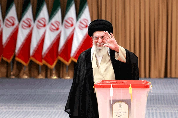 Lãnh tụ tối cao Iran Ali Khamenei đi bỏ phiếu bầu tổng thống hôm 5-7. Ảnh: Tehrantimes