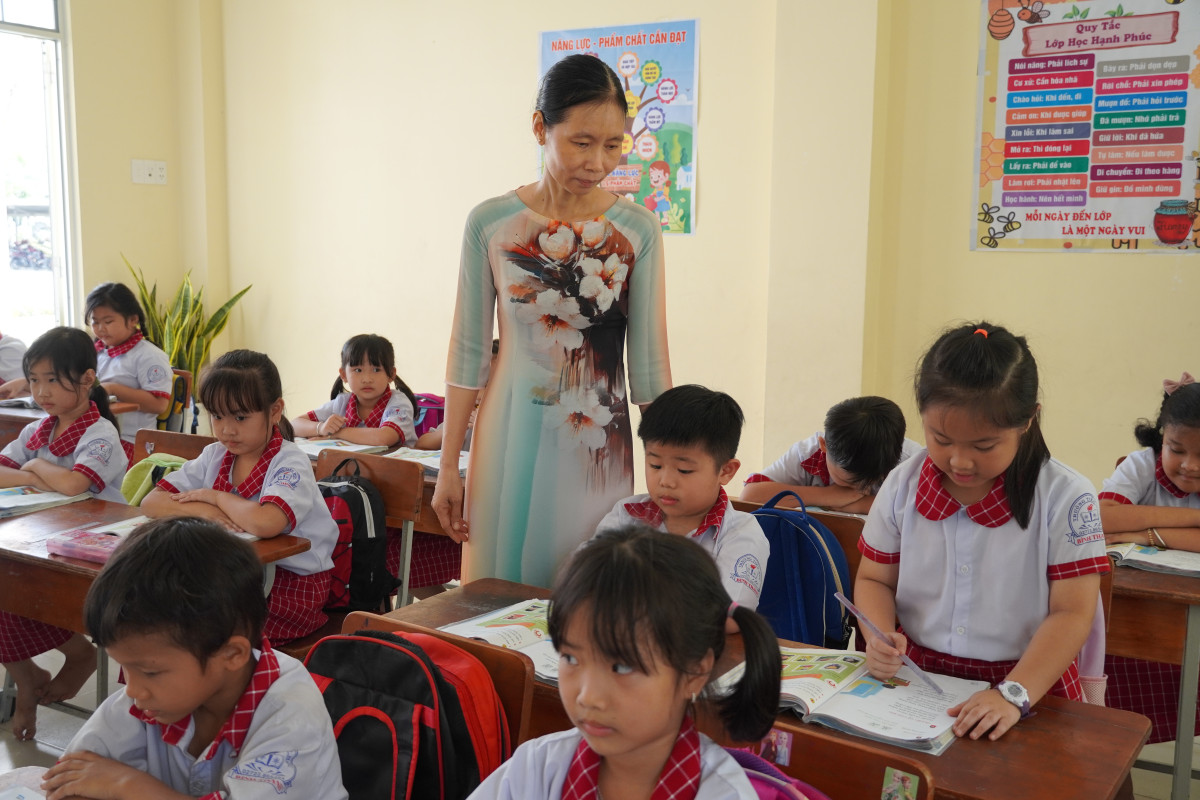Cô Phượng hướng dẫn HS về tư thế ngồi viết, cách cầm bút đúng, cách để vở; đồng thời, rèn cho HS nắm vững các nét cơ bản. Trong đó, cô Phượng chú trọng các chữ viết mẫu để HS học theo, bảo đảm viết đúng, đẹp. Cô còn hướng dẫn HS nhận diện các nhóm chữ có nét tương đồng; cách viết nét thanh, nét đậm và hình thành kỹ năng viết đúng, viết đẹp cho các em;...
