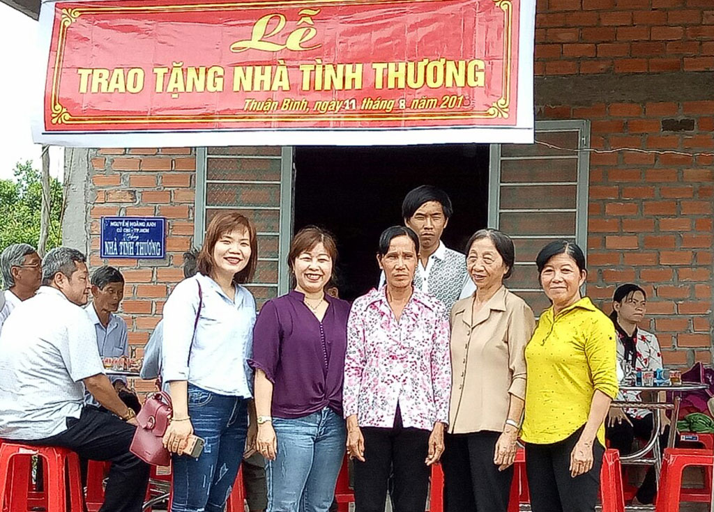 Với tấm lòng thương người, mong muốn chia sẻ phần nào khó khăn với những mảnh đời bất hạnh, nhiều năm qua, chị Hương cùng bạn bè đóng góp xây tặng nhà tình thương và tặng quà những hộ có hoàn cảnh khó khăn tại xã Thuận Bình nhân Ngày Vì nạn nhân chất độc da cam (10/8) và dịp Tết Nguyên đán.