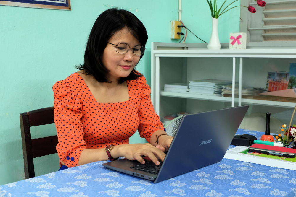 Cô Nguyễn Thị Kim Thoa thường dành thời gian nghỉ trưa ở lớp để soạn giáo án, chuẩn bị cho các tiết dạy kế tiếp