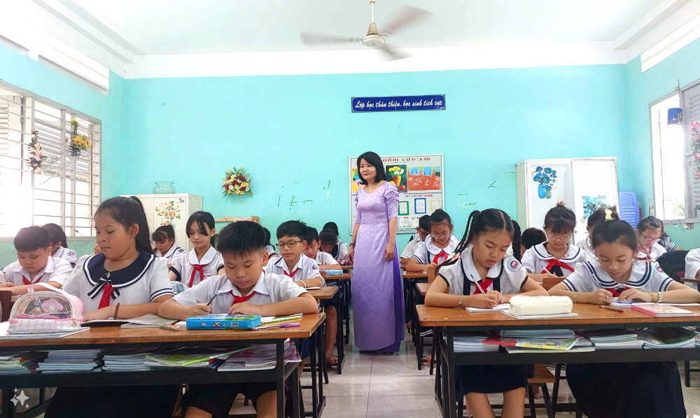 Cô Thoa tận tình chỉ dạy, theo sát các em học sinh trong từng tiết dạy