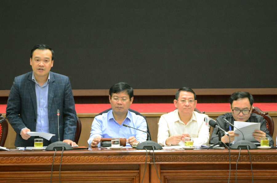 | Phó Chủ tịch UBND quận Long Biên Vũ Xuân Trường thông tin tại hội nghị giao ban. |