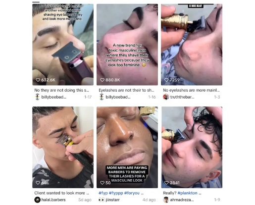 Theo CNN (Mỹ), có hàng loạt video được đăng lên các mạng xã hội TikTok, Instagram và X trong những tuần gần đây cho thấy cảnh nam giới liều lĩnh kề lưỡi dao rất gần mắt họ, tại các tiệm cắt tóc từ Thổ Nhĩ Kỳ đến New Zealand, để cắt ngắn hàng mi.