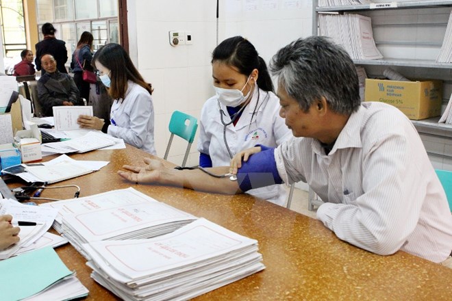 Nhân viên y tế khám,theo dõi sức khỏe cho người dân. (Ảnh: TTXVN/Vietnam+)