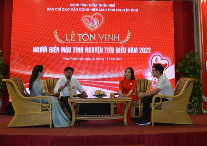 Thừa Thiên Huế là một trong những đơn vị dẫn đầu Phong trào hiến máu tình nguyện toàn quốc. Một trong những điểm nổi trội của phong trào vận động hiến máu tình nguyện ở Thừa Thiên Huế là các hoạt động phát triển theo hướng bền vững với sự tham gia của đông đảo các tầng lớp trong xã hội. Chỉ riêng năm 2022 đã có hơn 25.607 lượt người tham gia hiến máu. Nhờ làm tốt công tác tuyên truyền, vận động, đến nay, 100% xã, phường ở tỉnh Thừa Thiên Huế đều có người tự nguyện tham gia hiến máu, là một trong 5 đơn vị dẫn đầu Phong trào hiến máu tình nguyện toàn quốc. Luôn xung kích tham gia hiến máu tình nguyện và vận động người dân tham gia hiến máu khi có sự phát động, kêu gọi, 100 đại biểu tiêu biểu nhất trong phong trào hiến máu ngày hôm nay đã không quản ngại khó khăn, luôn sẵn sàng trao giọt máu đào và trao niềm hi vọng cho những người bệnh.