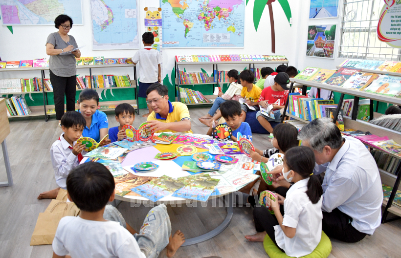 Công trình không gian đọc sách, tương tác và sinh hoạt Đội do Trung ương Đoàn TNCS Hồ Chí Minh và Hội đồng Đội Trung ương hỗ trợ tại Trường Tiểu học Tân Hòa B, xã Tân Hòa, huyện Tiểu Cần tạo sân chơi bổ ích, lành mạnh thu hút nhiều thiếu nhi tham gia.