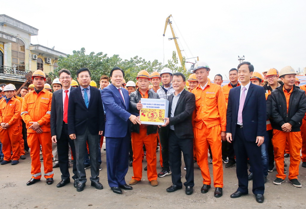 | Đồng chí Nguyễn Hoàng Anh, Ủy viên Trung ương Đảng, Chủ tịch Ủy ban Quản lý vốn nhà nước tại doanh nghiệp thăm và tặng quà cho cán bộ công nhân Cảng Hải Phòng |