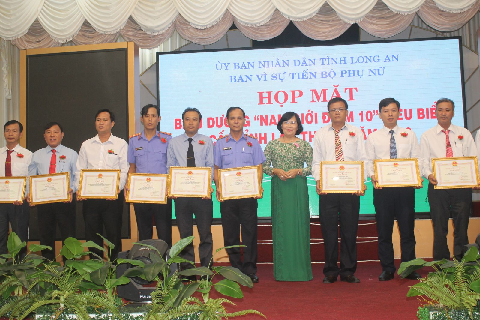 Thông qua mô hình Nam giới điểm 10, đã xuất hiện nhiều tấm gương nam giới tiêu biểu. Cụ thể như anh Nguyễn Văn Nhuần (Sở Lao động - Thương binh và Xã hội), anh Lương Ngọc Linh (Chi cục Trồng trọt, Bảo vệ thực vật và Quản lý chất lượng nông sản), anh Võ Duy Huy Phong (Trung tâm Văn hóa Nghệ thuật tỉnh), anh Lê Thanh Hải (Trường THPT Lê Quý Đôn), anh Đoàn Bảo An (xã An Lục Long, huyện Châu Thành),... Anh Lương Huỳnh Tâm, ngụ phường Khánh Hậu, TP.Tân An, bộc bạch: “Tôi rất vinh dự là 1 trong 87 nam giới đạt điểm 10 được biểu dương, khen thưởng cấp tỉnh. Để đạt được Nam giới điểm 10 cấp tỉnh, ngoài dành thời gian chăm sóc gia đình, tôi còn tạo điều kiện cho phụ nữ trong cơ quan phát triển, hoàn thành tốt nhiệm vụ được giao”.