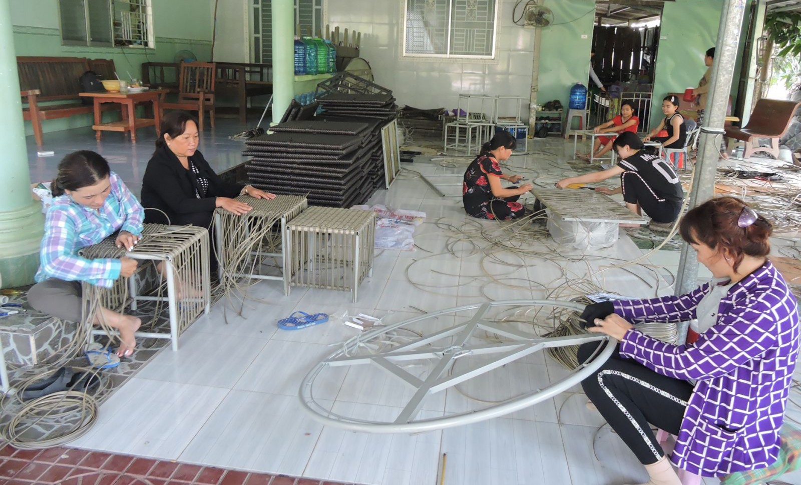 Thành viên Tổ Hợp tác đan dây nhựa lao động tại nhà bà Nguyễn Thị Bích Lệ.