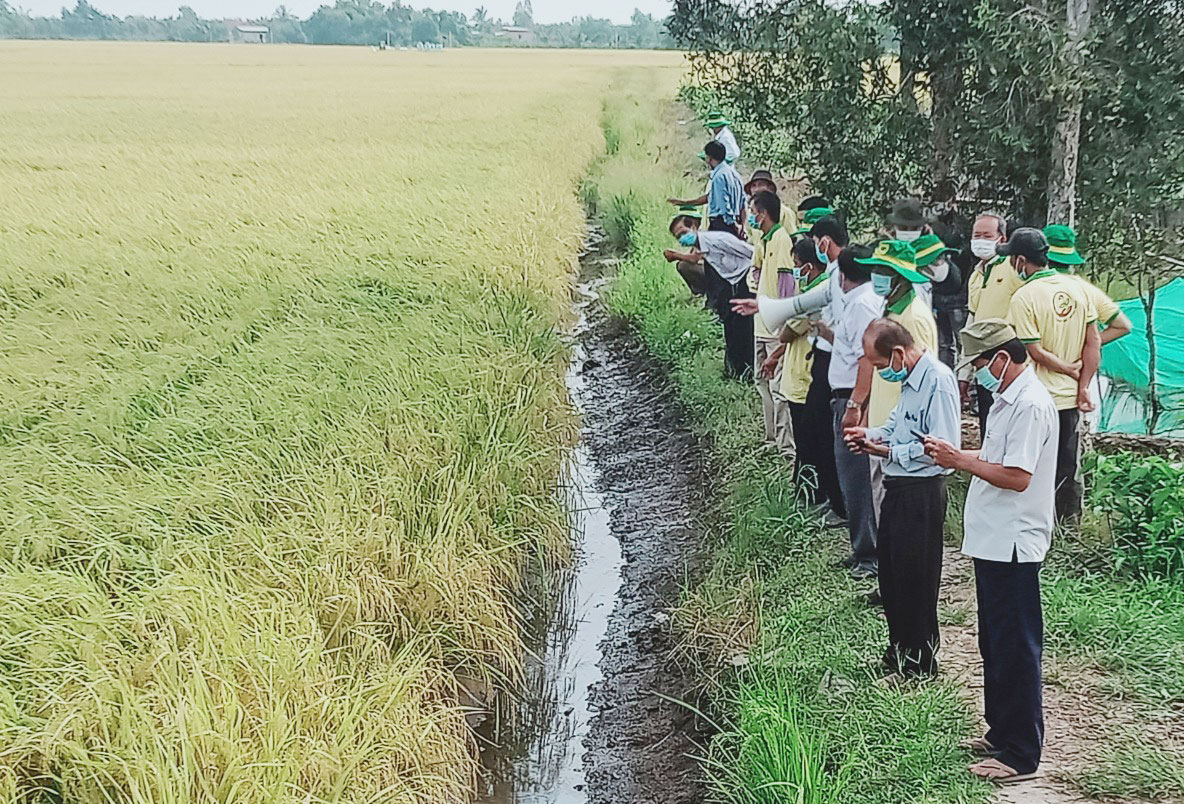 Tham gia mô hình Canh tác lúa thông minh thích ứng biến đổi khí hậu vụ Đông Xuân 2021-2022, nông dân được trao đổi, chia sẻ kinh nghiệm trồng lúa