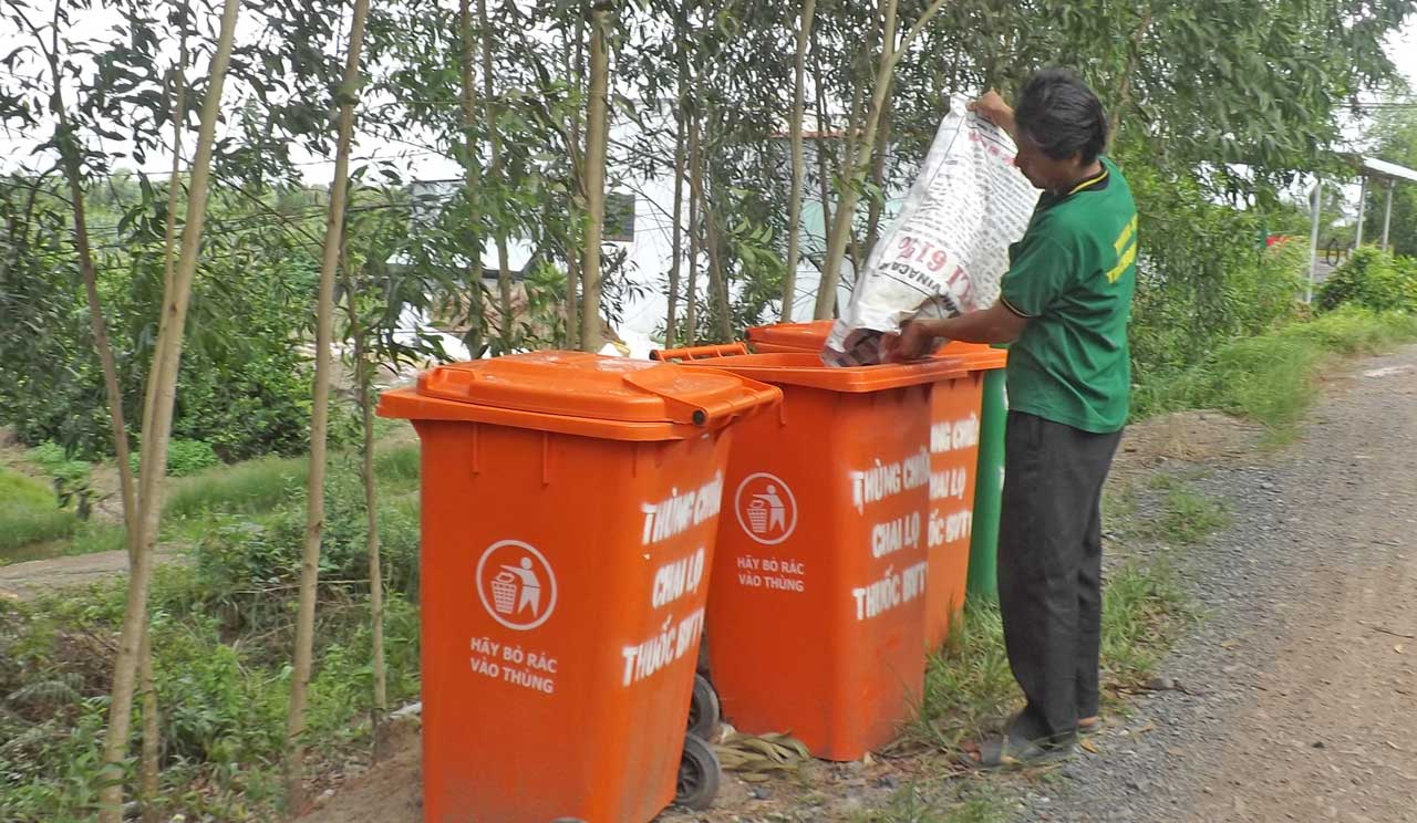 Mô hình được thực hiện từ tháng 5-2017 tại ấp 6, có 25 hộ dân tham gia. Tập đoàn Lộc Trời (tỉnh An Giang) hỗ trợ nông dân 10 thùng nhựa có nắp đậy, có thể chứa đến 0,5m3 vỏ, bao bì thuốc BVTV. Các điểm đặt thùng chứa được bố trí nơi thuận tiện, xa nguồn nước, khu dân cư.