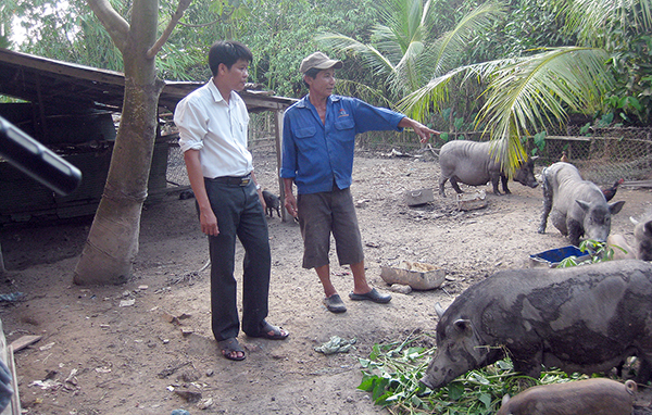 Với tinh thần ham học hỏi, dám nghĩ dám làm, tận dụng diện tích đất ít ỏi của gia đình, hơn 10 năm trước, ông Rô đã quyết định chọn nuôi heo rừng để phát triển kinh tế. Lúc đầu, do không có vốn nên ông vay mượn của người thân mua khoảng 10 con heo làm giống và gầy đàn. Heo rừng dễ nuôi, phát triển tốt, cộng thêm nguồn thức ăn dễ tìm, chủ yếu là các loại cây, lá có sẵn trong vườn. Vì vậy, ông tận dụng khoảng 100m2 đất trống của gia đình để trồng rau lang, rau muống và các loại cỏ, tăng nguồn thức ăn cho heo.