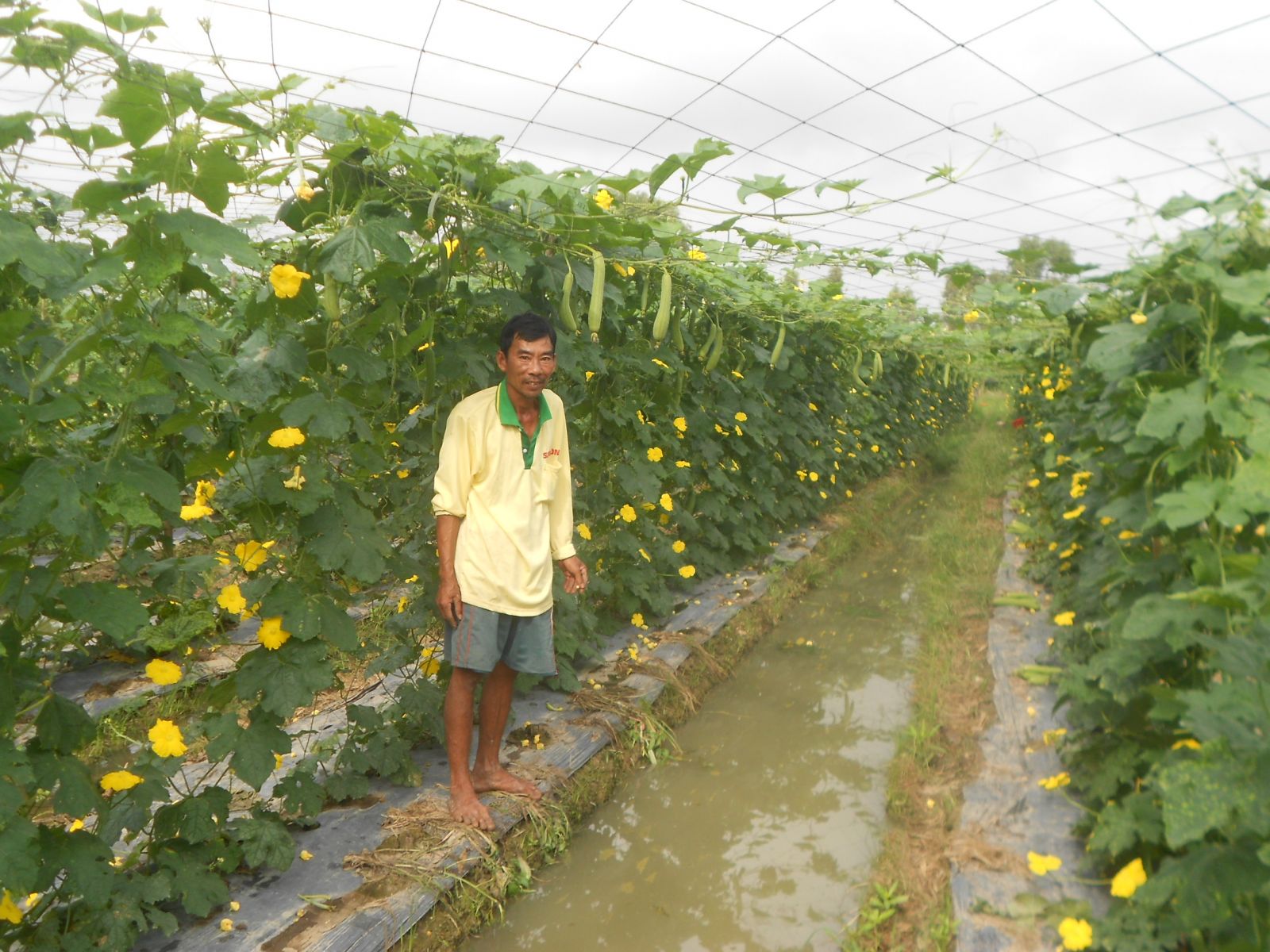 Anh Phạm Văn Sơn với rẫy mướp