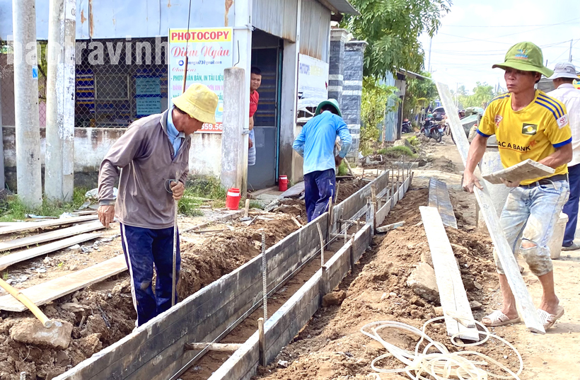 Thi công hạng mục vỉa hè thuộc công trình nâng cấp mở rộng đường vào trung tâm xã Hòa Minh.