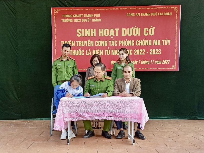 Tại buổi tuyên truyền, giáo viên và học sinh Trường THCS Quyết Thắng đã được các tuyên truyền viên của Công an thành phố Lai Châu truyền tải thông tin về các loại ma túy, chất gây nghiện mới núp bóng dưới các dạng thực phẩm, nước uống không rõ nguồn gốc, xuất xứ… dễ xâm nhập vào học đường hiện nay; tác hại, nguyên nhân dẫn đến việc sử dụng ma túy và cách phòng tránh; các quy định của pháp luật về xử phạt các đối tượng sử dụng, buôn bán, tàng trữ, vận chuyển về ma túy; dấu hiệu nhận biết người sử dụng ma túy; trách nhiệm của cá nhân, gia đình, trường học, xã hội trong phòng, chống ma túy…