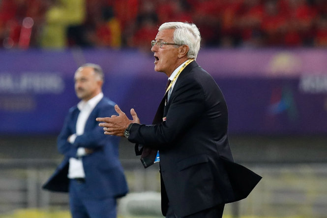 HLV Lippi trong trận Trung Quốc thắng Uzbekistan 1-0 hôm 31/8. Ảnh: Reuters