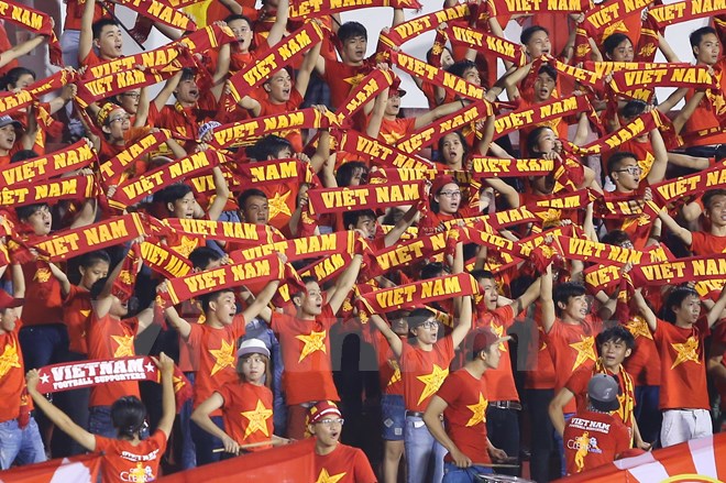 Cổ động viên ủng hộ U21 Việt Nam kém "nhiệt" hơn so với khi cổ vũ U21 Hoàng Anh Gia Lai. (Ảnh: Minh Chiến/Vietnam+)