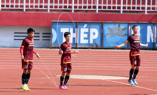Đội tuyển U-23 VN tập luyện trên sân Thống Nhất ngày 31-12-2015 - Ảnh: N.K.