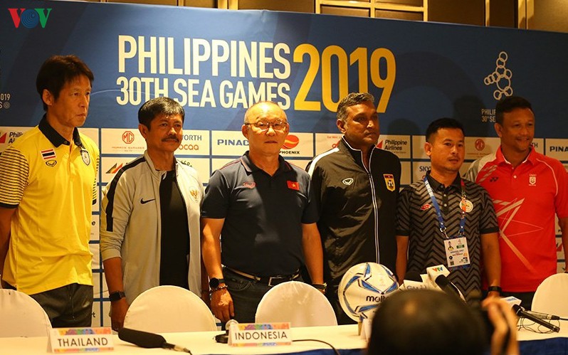 Môn bóng đá nam SEA Games 30 sẽ khởi tranh vào ngày mai (25/11) nên BTC đã tổ chức họp báo cho các huấn luyện viên ở 2 bảng đấu vào trưa nay tại khách sạn Century Park (Manila Philippines).
