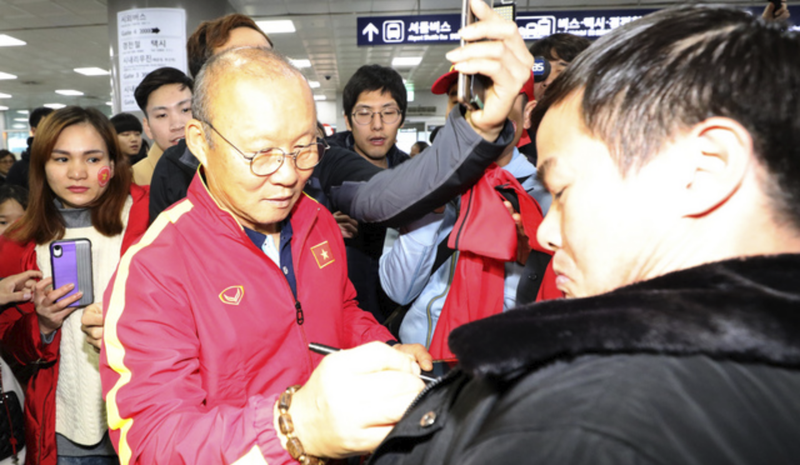 HLV Park Hang Seo ký tặng người hâm mộ ở Hàn Quốc. (Ảnh: Newsis)