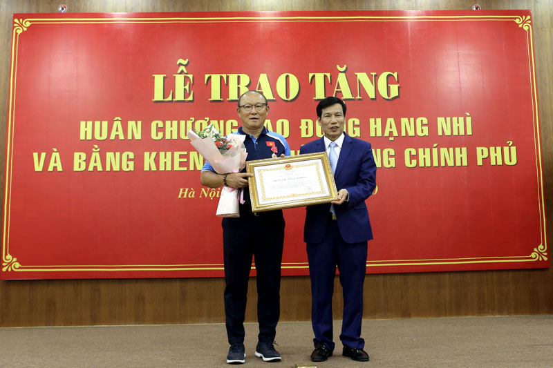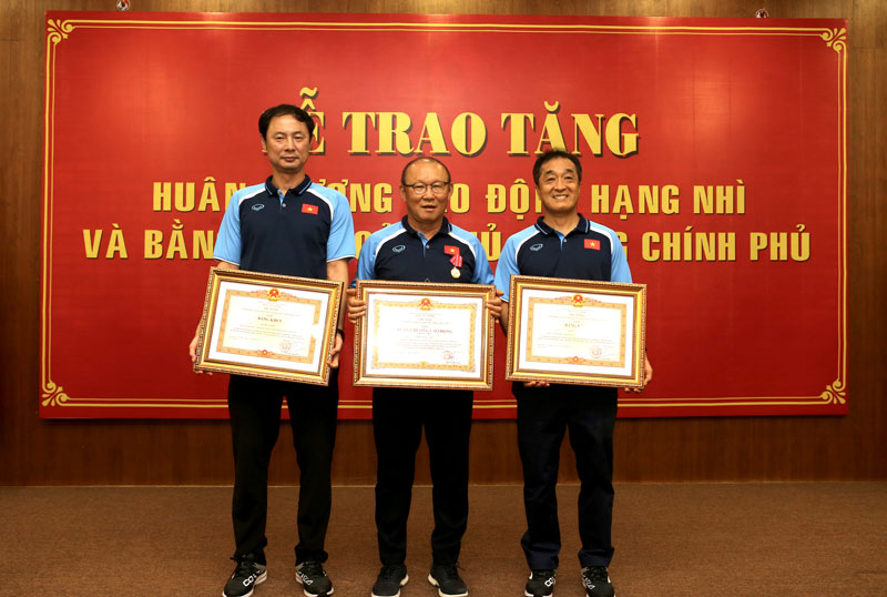 Sau thành tích cùng Đội tuyển Việt Nam vô địch AFF Suzuki Cup 2018, HLV trưởng Park Hang-seo đã vinh dự được Thủ tướng Nguyễn Xuân Phúc thay mặt Lãnh đạo Đảng, Nhà nước trao Huân chương Hữu nghị. Tiếp đó, với nỗ lực cùng Đội tuyển U22 giành Huy chương Vàng tại SEA Games 30 năm 2019 tại Philippines, HLV Park Hang-seo đã được Đảng, Nhà nước ta tặng Huân chương Lao động hạng Nhì.