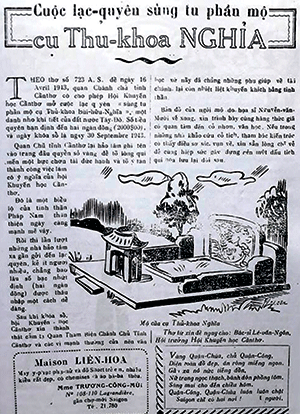| Bài báo có nội dung về cuộc lạc quyên sùng tu mộ Thủ Khoa Bùi Hữu Nghĩa. |