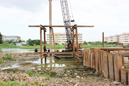 | Thi công hồ Bún Xáng. |