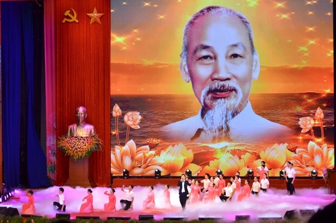 | Một tiết mục nghệ thuật tại Lễ kỷ niệm 130 năm Ngày sinh Chủ tịch Hồ Chí Minh. (Ảnh: PC) |