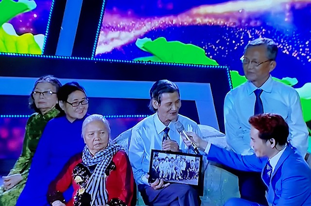 | Ông Võ Phổ, dũng sĩ miền Nam mang theo bức ảnh vinh dự được gặp Bác Hồ năm 1967 tới cầu truyền hình. |
