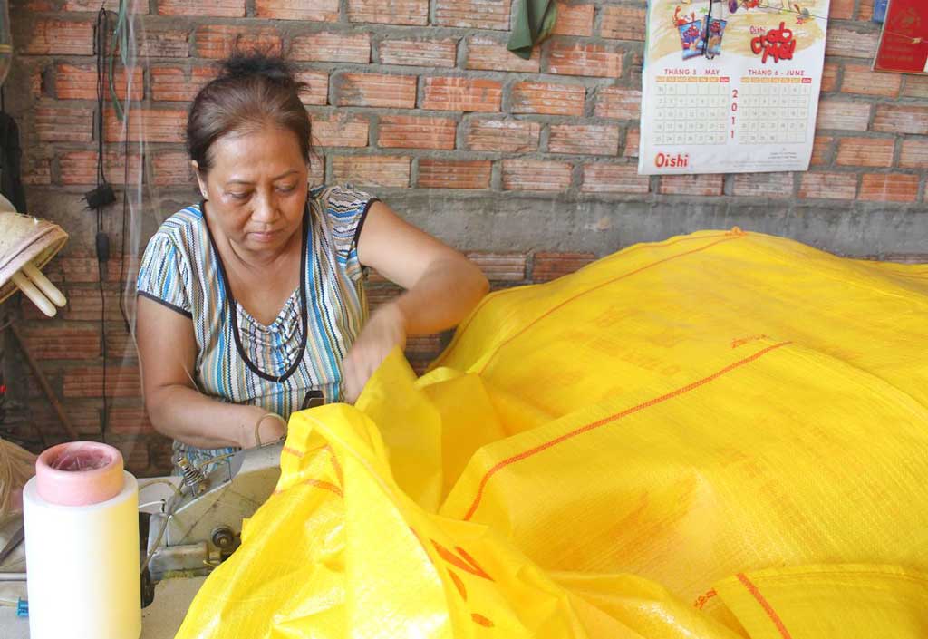 Bà Cao Thị Thanh Thủy (ấp 2, xã Tân Lập) cho biết: “Trước đây, vợ chồng tôi sống bằng nghề làm thuê nên thu nhập “ngày có, ngày không”. Sức khỏe cả hai vợ chồng lại không tốt, nay ốm, mai đau, nhờ Hội LHPN xã tạo điều kiện cho vợ chồng tôi học may và cho vay vốn mua máy may để nhận may bao gia công tại nhà, có thu nhập trên 4 triệu đồng/tháng”.