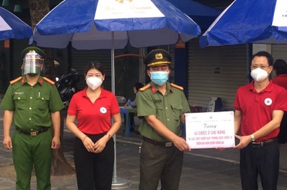 Tiếp tục các hoạt động hỗ trợ các lực lượng đang thực hiện nhiệm vụ phòng, chống dịch, ngày 6/8, Hội Chữ thập đỏ thành phố Hà Nội phối hợp cùng một số đơn vị trao tặng 300 ô chống nắng trị giá 105 triệu đồng cho các chốt kiểm soát tại các quận Hoàn Kiếm, Ba Đình, Đống Đa, Thanh Xuân, Cầu Giấy, Nam Từ Liêm, Bắc Từ Liêm, Hà Đông và huyện Chương Mỹ.